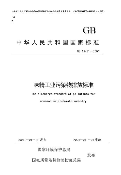 味精工業(yè)污染物排放標準(GB 19431-2004)