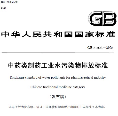中藥類制藥工業(yè)水污染物排放標準(GB 21906-2008)