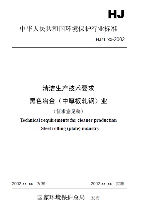 《清潔生產技術要求 黑色冶金(中厚板軋鋼)業》(征求意見稿)