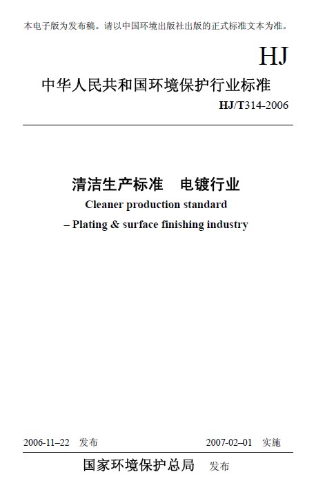 HJT 314-2006 清潔生產(chǎn)標(biāo)準(zhǔn) 電鍍行業(yè)