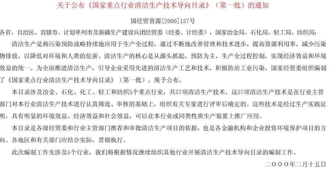國家重點行業清潔生產技術導向目錄(第一批)