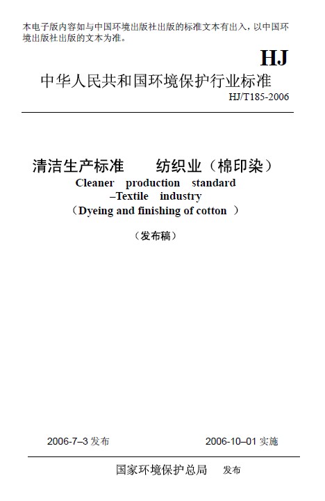 清潔生產標準 紡織業(棉印染)
