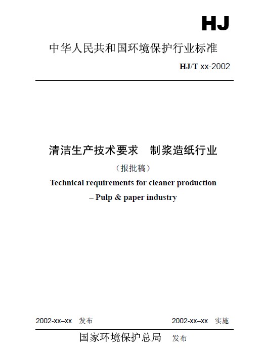《清潔生產技術要求 造紙制漿行業》(報批稿)