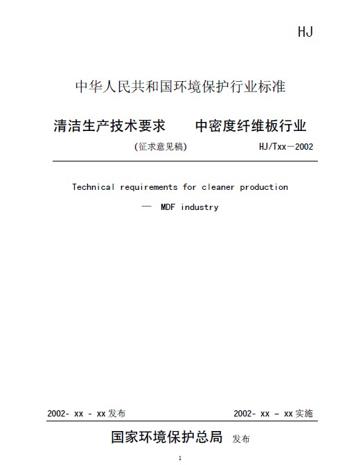 《清潔生產技術要求 中密度纖維板行業》(征求意見稿)
