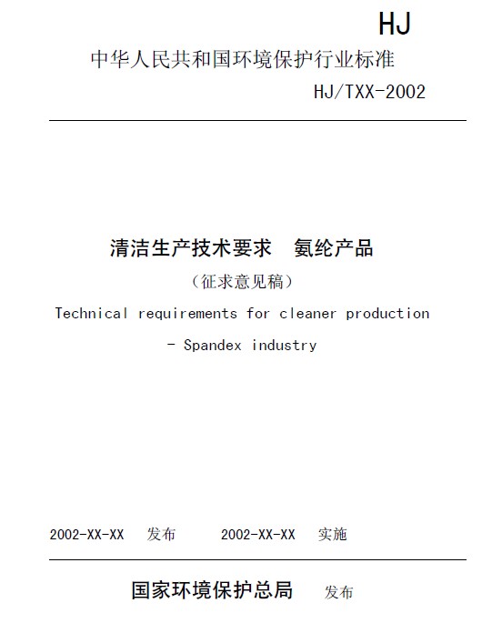《清潔生產(chǎn)技術(shù)要求 氨綸產(chǎn)品》(征求意見稿)