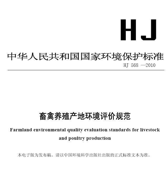 畜禽養殖產地環境評價規范 HJ 568-2010