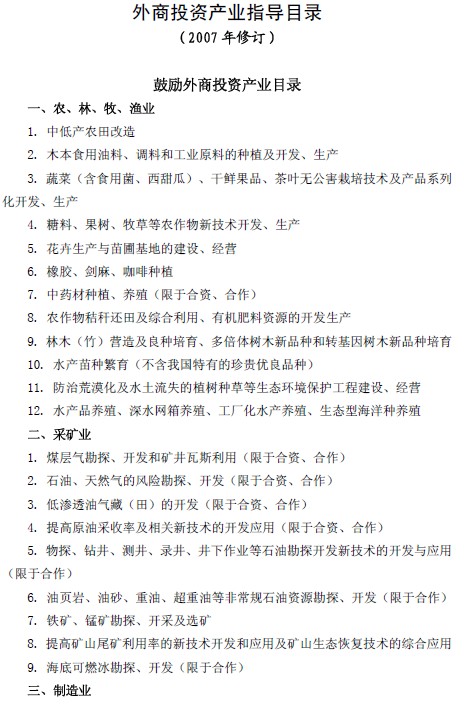 《外商投資產業指導目錄》2007年